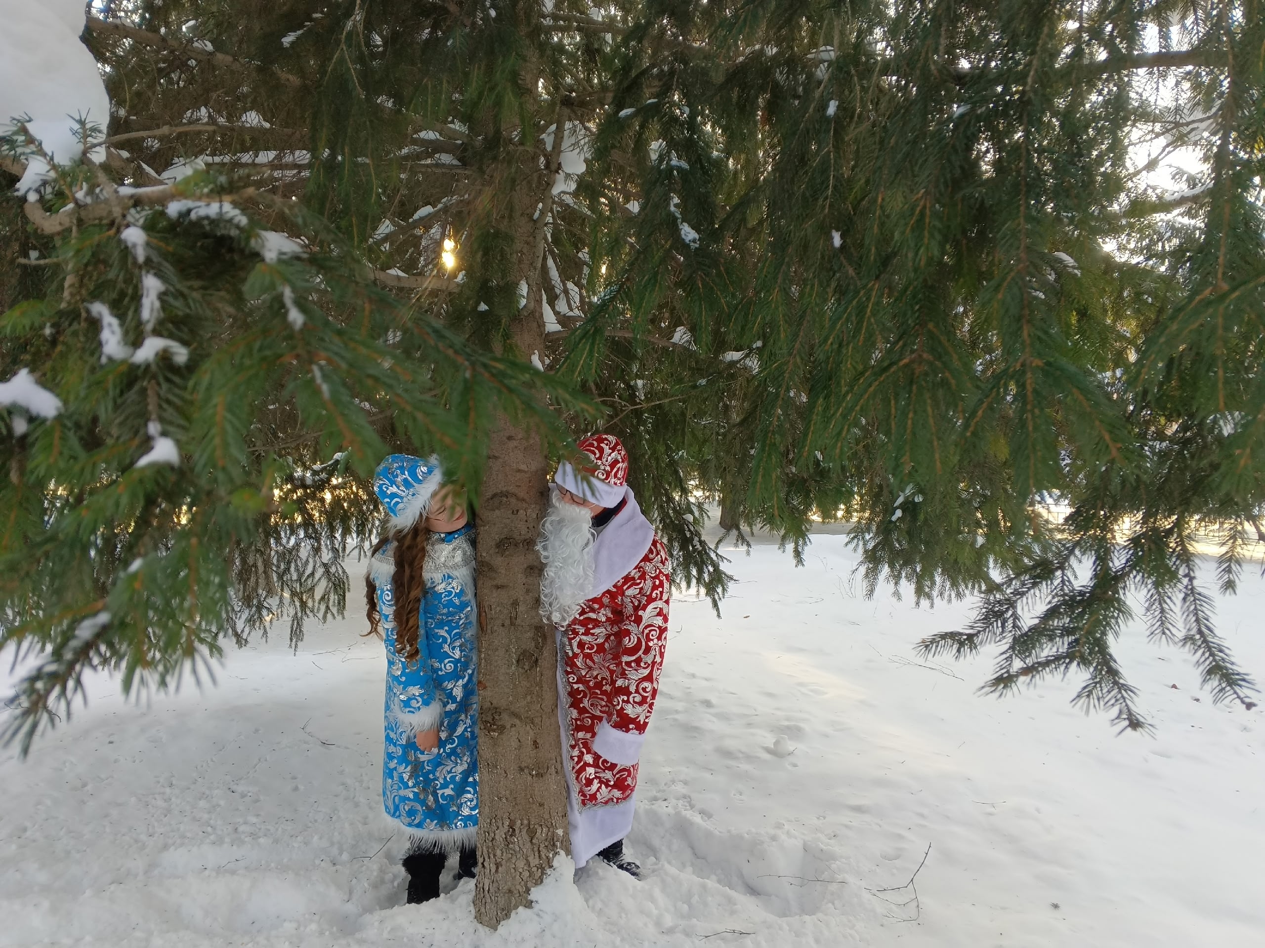 Ученики 7 класса школы №5 Данила Чугай и Дарья Слобожанина надели костюмы всеми любимых сказочных героев Деда Мороза и Снегурочки и вышли на улицы поселка вместе с советником по воспитанию Натальей Сергеевной Ланг, чтобы поздравить жителей и гостей нашего округа с Новым 2026 годом!