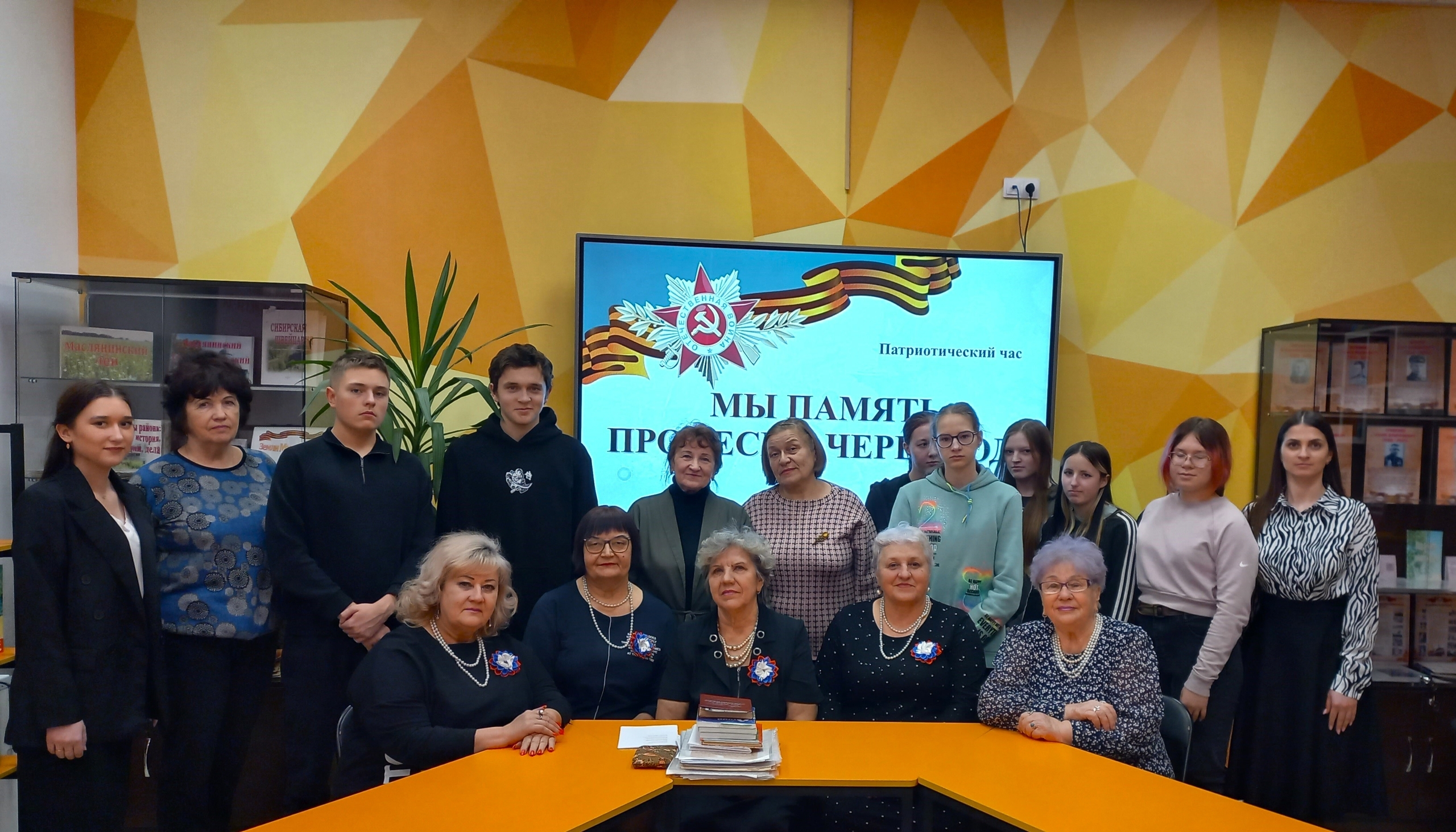 Ушакова Тамара Федоровна – руководитель объединения, ветеран педагогического труда, общественный деятель и почетный житель р. п. Маслянино, в ходе беседы погрузила участников в события военных лет, рассказала о ключевых вехах истории: о трагическом начале блокады Ленинграда, о героической Сталинградской битве, ставшей переломным моментов войны. Особое внимание было уделено истории детских домов в Маслянино. Именно сюда в годы войны привозили детей из блокадного Ленинграда. Не обошла стороной Тамара Федоровна и одну из самых страшных страниц человечества Холокост, рассказав о концлагерях и судьбах земляков, прошедших через нечеловеческие испытания.