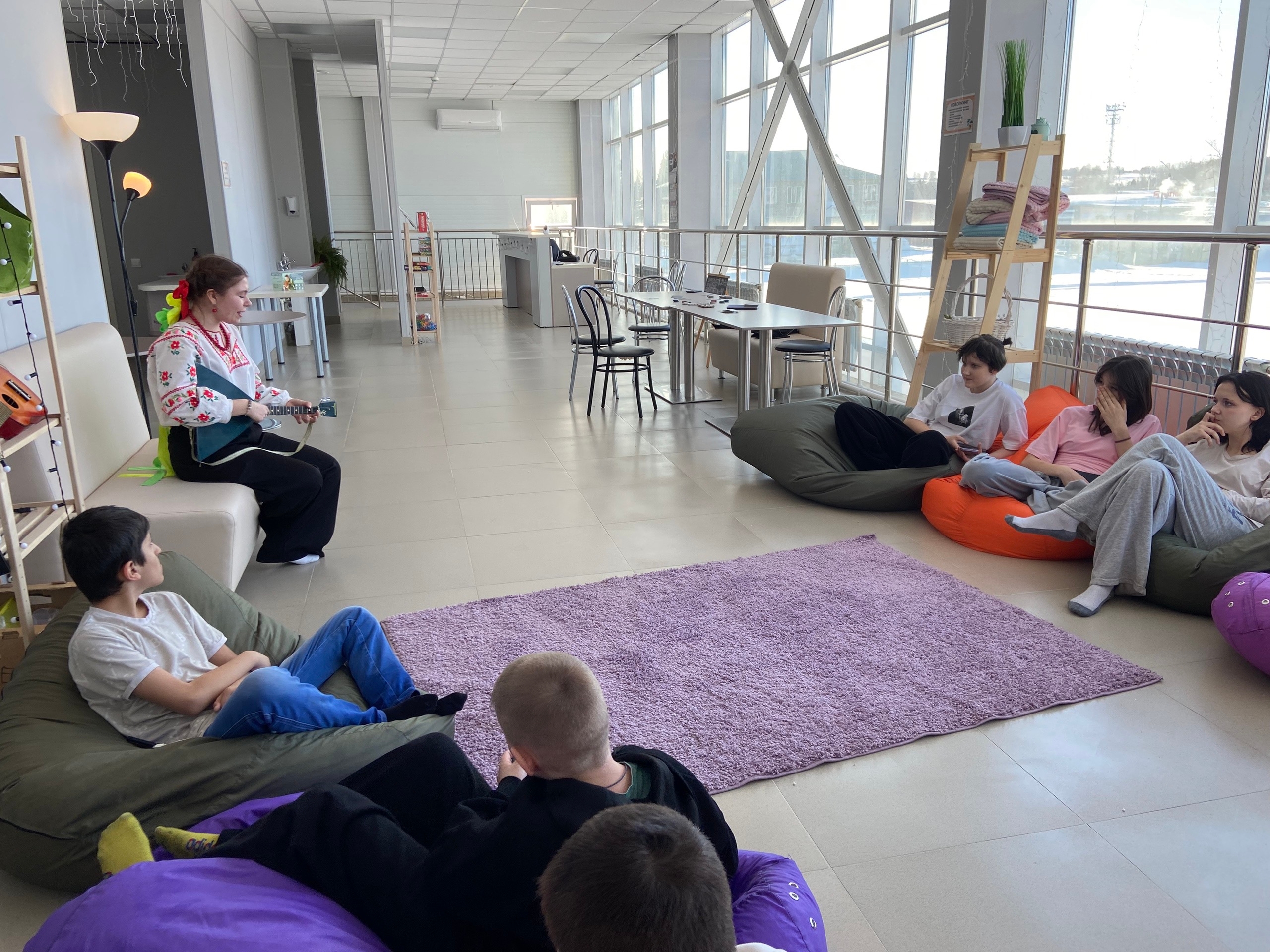 24 марта в Молодежном открытом пространстве состоялся душевный вечер, на котором замечательная активистка Элина Прилепа исполнила для ребят фольклорные и современные песни под балалайку!