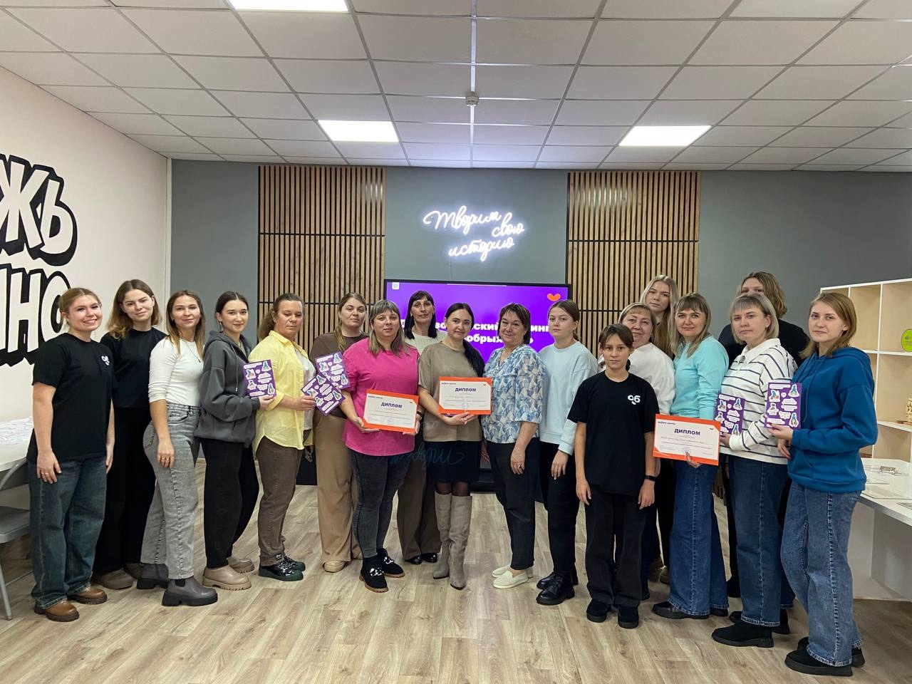 Участники играли в игру «Мемо», «Крокодил», рисовали добровольческие листки, решали ситуационные задачи, с которыми сталкивается волонтеры в повседневной жизни, работали в платформе Добро.рф, придумывали новые акции, проекты, и закрепляли свои теоретические знания.