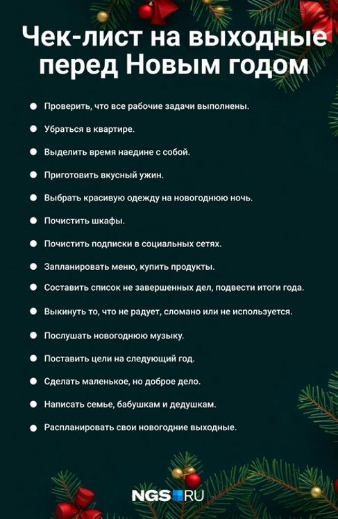 От уборки до дзена: что обязательно нужно успеть сделать в выходные перед Новым годом — чек-лист от новосибирских психологов