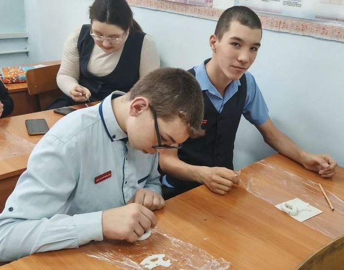 Во время мастер-класса ребята узнали историю новогодней игрушки в России, чем украшали ель в советское время, а после изготовили по шаблону елочные игрушки из глины, которыми будет украшена школа.