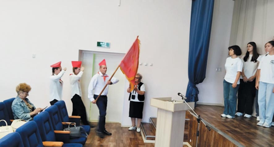 Зазвучал горн, на барабане юный барабанщик начал с азартом выбивать дробь, знамя поплыло по светлому, просторному залу, заполненному учениками 7-11-х классов.