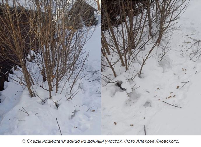 «Заметил, что на соседнем участке заяц начал стричь ветки вишни. Вчера следов его трапезы заметно прибавилось», — рассказал VN.ru кандидат биологических наук Алексей Яновский.